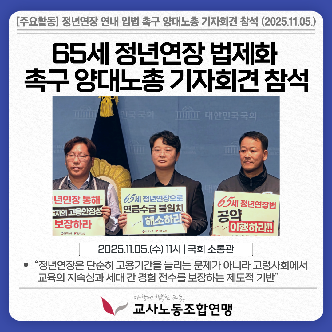 법정 정년연장 연내 입법 촉구 양대노총 기자회견 (2025-11-05)