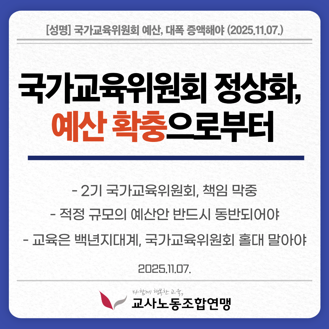 국가교육위원회 예산, 대폭 증액해야(2025.11.7.)